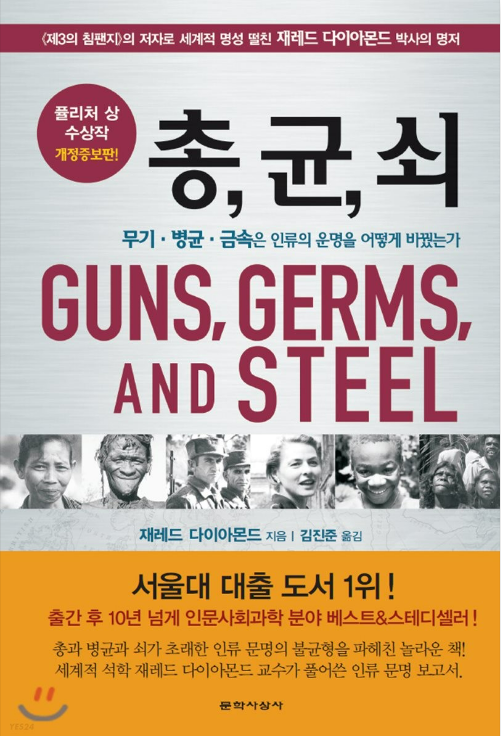 오늘날 인류는 문화적 불평등을 겪고 있다. 어떤 나라는 부와 문화가 넘쳐나고 다른 나라는 가난이 넘쳐난다. 이런 이유는 인종이나 역사 탓이라기보다는 대부분은 바로 지리환경적 요인 탓이다라는 것이 이 책의 주제인듯하다.